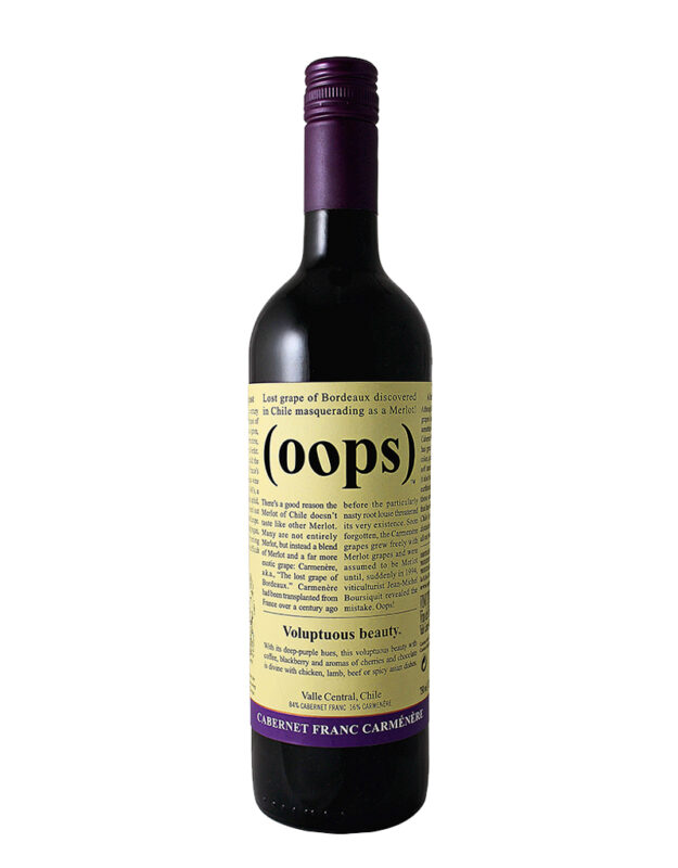 Oops is the latest project of Vina Undurraga, a 135-year old family-owned winery in Chile. In 1860 Francisco Undurraga brought grapes from Germany and France and planted them in his vineyards in Chile. In 1903 the Undurraga winery became the first Chilean winery to export wine to the U.S. The choice to export their wines resulted in receiving awards for the high quality of its product.